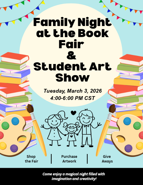 Tuesday, Mar 3- One Fish, Two Fish, Red Fish, Blue Fish- Wear fishing/fish inspired attire. Join us for Family Night and Student Art Show from 4:00-6:00 PM